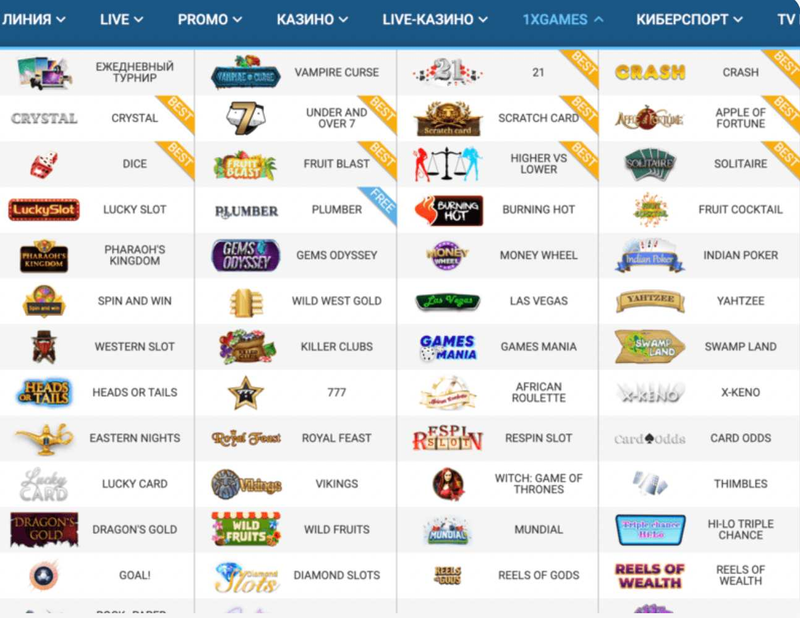 Типы игр в 1xGames