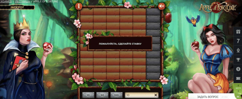 Apple of Fortune – это захватывающая игра, в которой игрокам предстоит собирать яблоки на поле, состоящем из ячеек. Вам нужно открывать ячейки, находя яблоки и увеличивая свой выигрыш. Однако будьте осторожны, ведь в некоторых ячейках скрываются змеи, которые могут остановить вашу игру. Цель игры – собрать как можно больше яблок и избегать змей, чтобы максимизировать свой выигрыш.