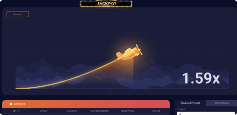 Crash – это инновационная и динамичная игра, в которой игроки делают ставки и наблюдают, как коэффициент выплаты увеличивается в режиме реального времени. Цель игры – вывести ставку из игры до того, как самолет “разрушится”. Вы можете выйти из игры в любой момент, забирая свой текущий выигрыш. Главное – выбрать подходящий момент, чтобы максимизировать вашу прибыль и избежать потерь.