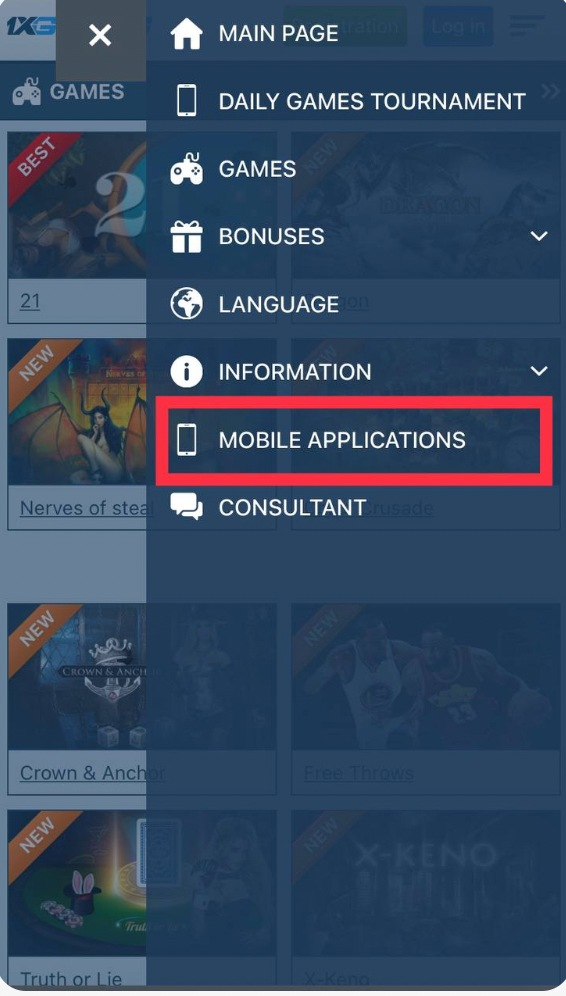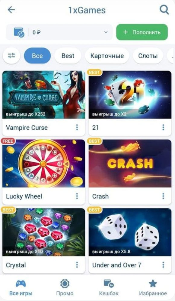 - В главном меню приложения найдите раздел “1xGames” и начните наслаждаться увлекательными играми онлайн.