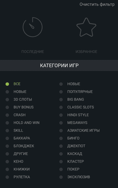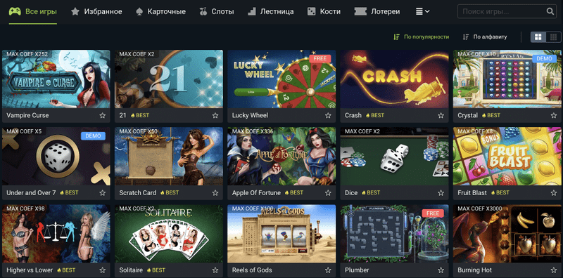 - Настольные игры: такие как блэкджек, рулетка, покер, баккара и другие популярные настольные игры.