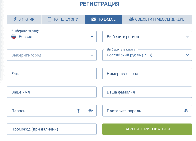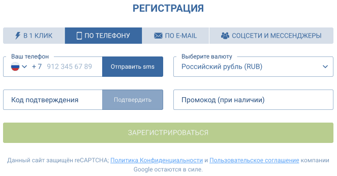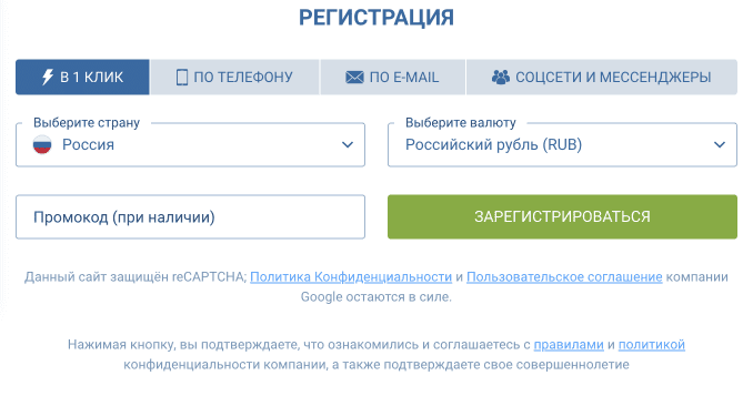 Сайт 1xbet предлагает регистрацию следующими способами: