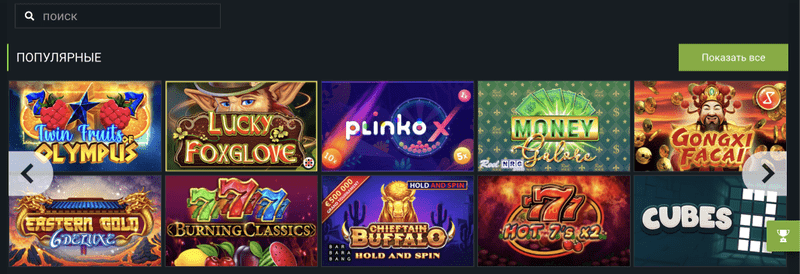 Для удобства игроков на сайте создан специальный поисковик для поиска любимой игры: легко найти игру по названию, провайдеру, отдаче (RTP). Также можно выбрать из категории “Популярное” и “Новинки”.