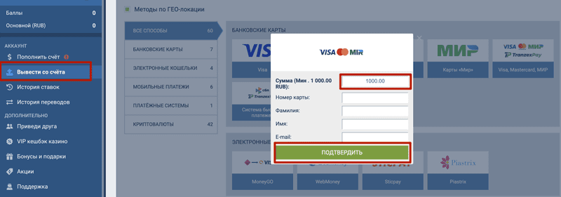Чтобы вывести средства в букмекерской конторе, вам нужно сделать следующие этапы: