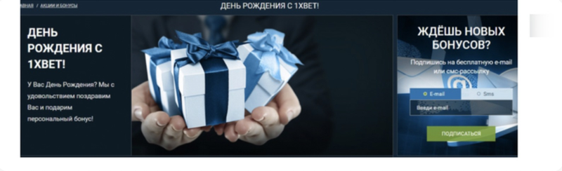 Внимание! Промокод актуален в течение определенного времени. Именинник сможет воспользоваться дополнительным поощрением букмекерской конторы — подарком на день рождения. Чтобы воспользоваться поощрением, скачайте актуальный промокод на сегодня.