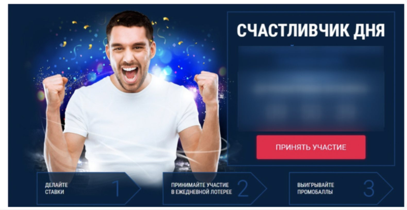 Каждый беттер сможет принять участие в акции на заключение пари — «Экспресс дня». Она проводится ежедневно и дает шанс получить +10 % к выигрышу. Бонус на первый депозит (не более 25000 рублей) выдается новым игрокам, создавшим личный аккаунт. Полученные бонусы отыгрываются согласно условиям администрации.